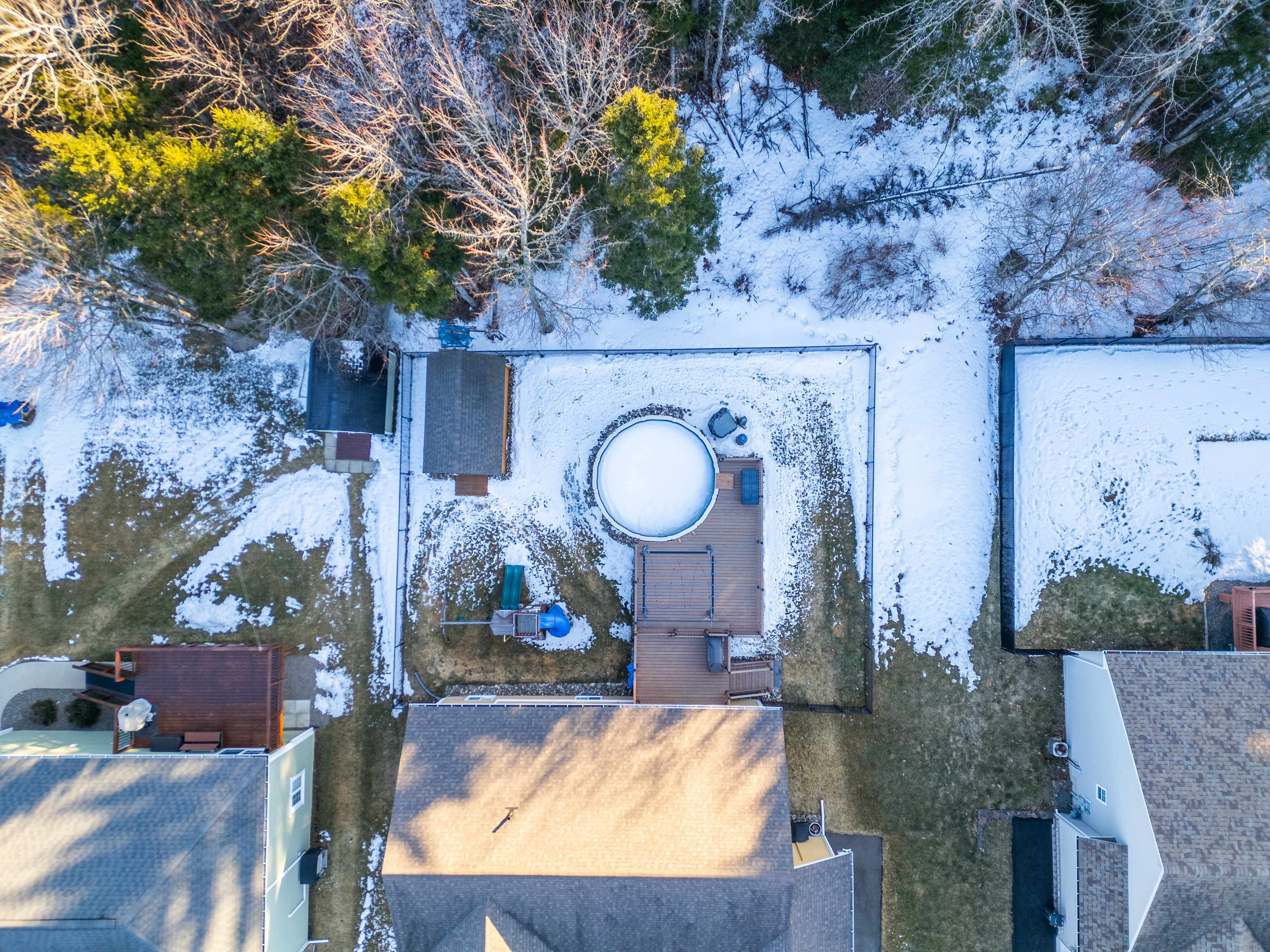 Outdoor Features: Covered front porch, stone walkway, Makamik crabapple ornamental tree, large back deck, 18' heated saltwater pool, 10' x 16' shed with ramp and loft