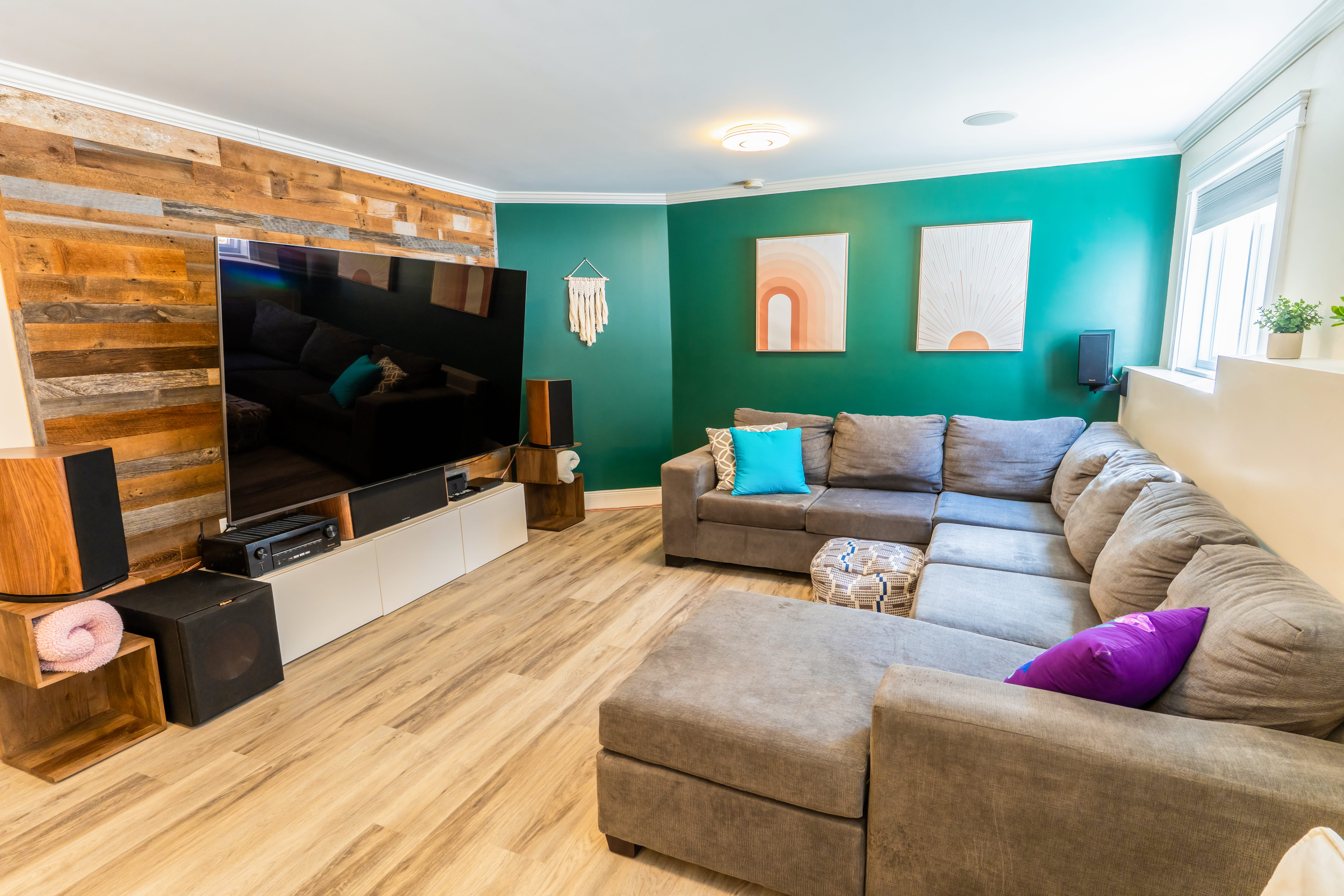 Rec room wired for 5.2.1 surround sound (includes ceiling speakers)